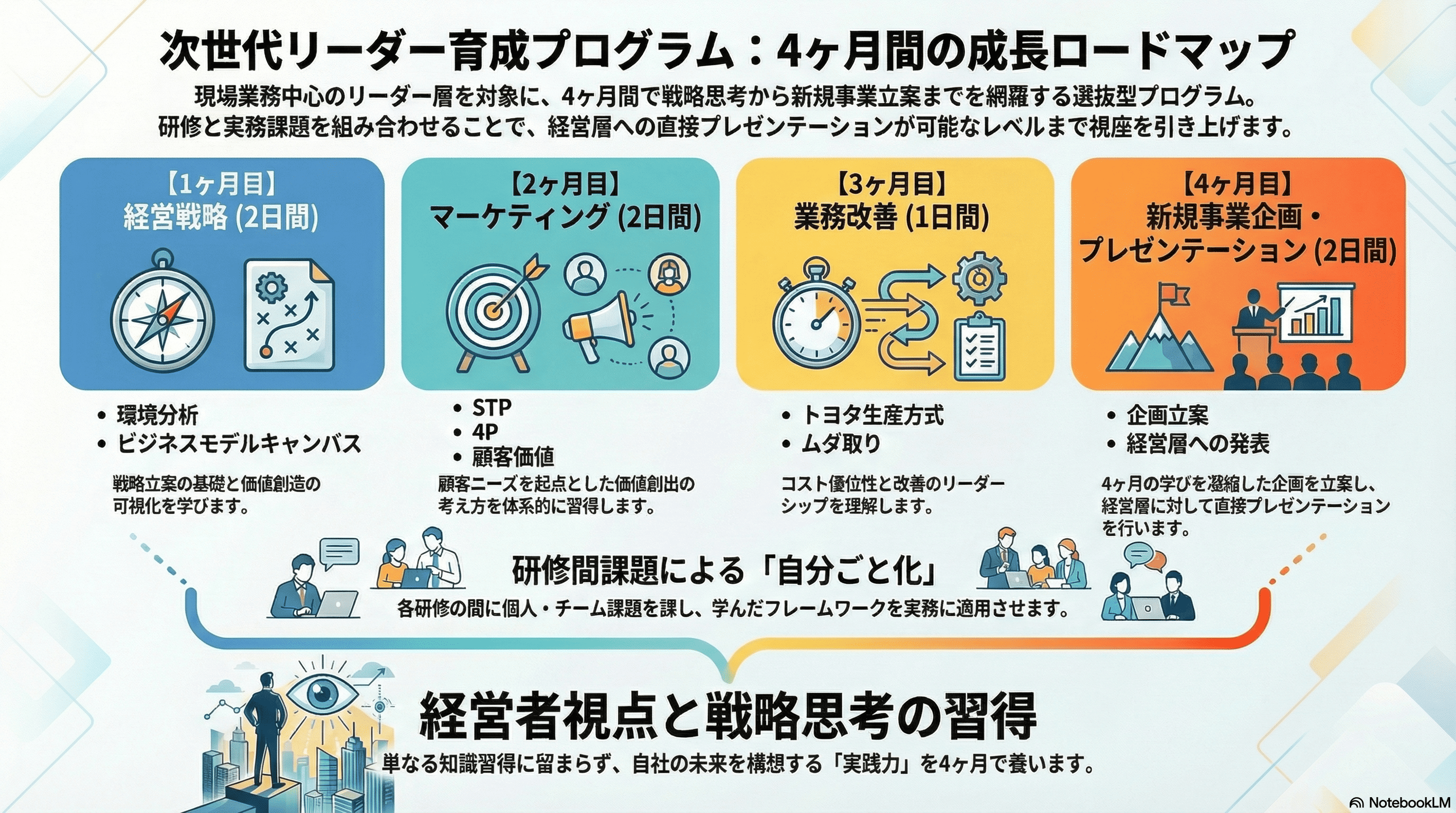(次世代リーダー/選抜人材/新規事業立案/企画力/経営戦略/マーケティング/トヨタ生産方式)