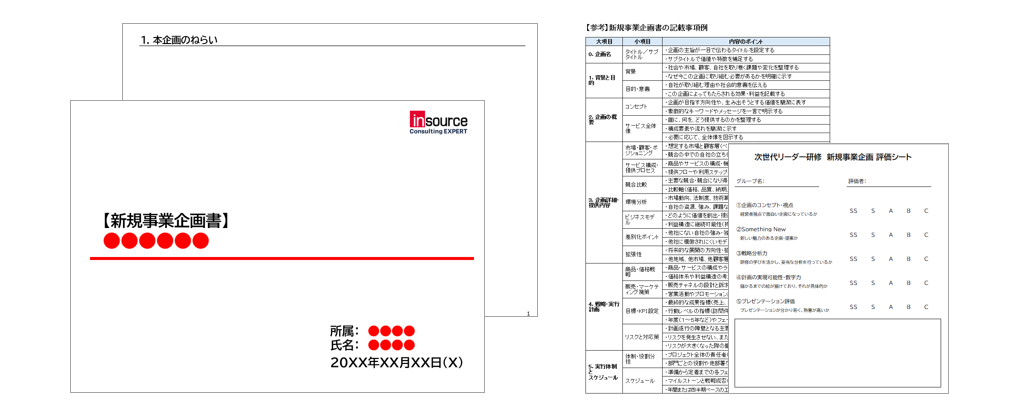 まず、研修間の課題として、新規事業の企画書を作成していただきます。本2日間では、その企画書のブラッシュアップとプレゼンテーションの練習を行い、最終的には経営層や上司に対してプレゼンテーションを実施します。